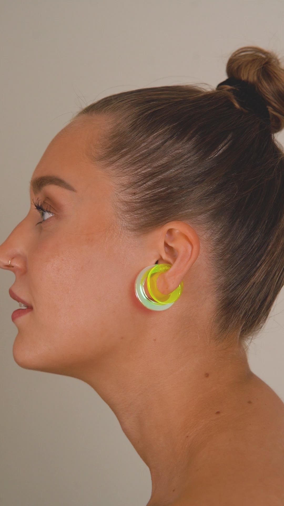 Combination of three different earcuffs — two of them with a secret. Translucent yellow AAMU 01/S and exclusive glow in the dark lime 03/L — not UV, just daylight collected and released after dark. Complete with iridescent VESI 02, our bestseller.